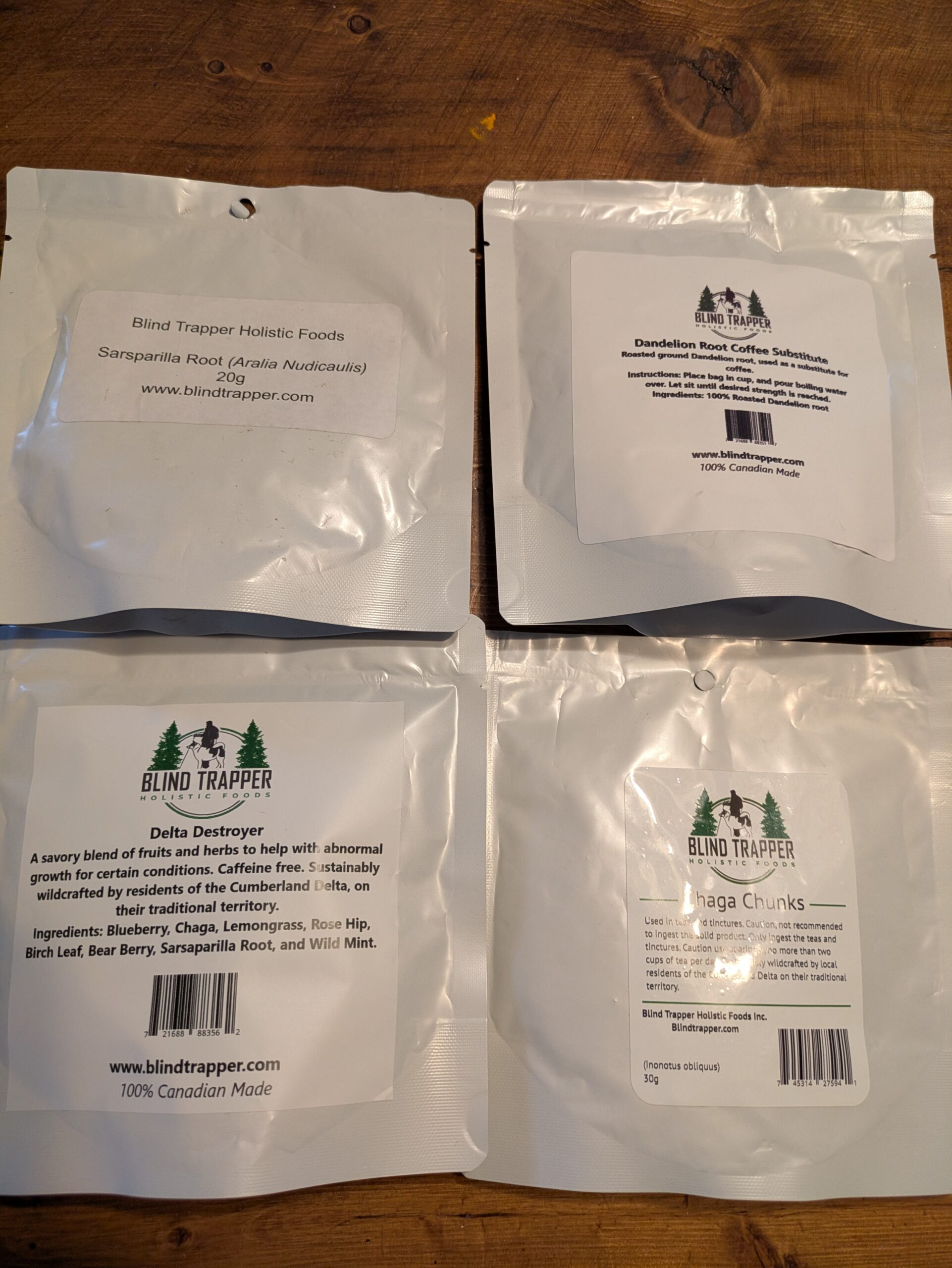 Detox bundle. Great for detoxing, helps with tumor growth, includes our Delta Detox tea, a bag of Chaga chunks, Sarsaparilla Root, and our Roasted Dandelion Root coffee substitute. Makes a great gift!